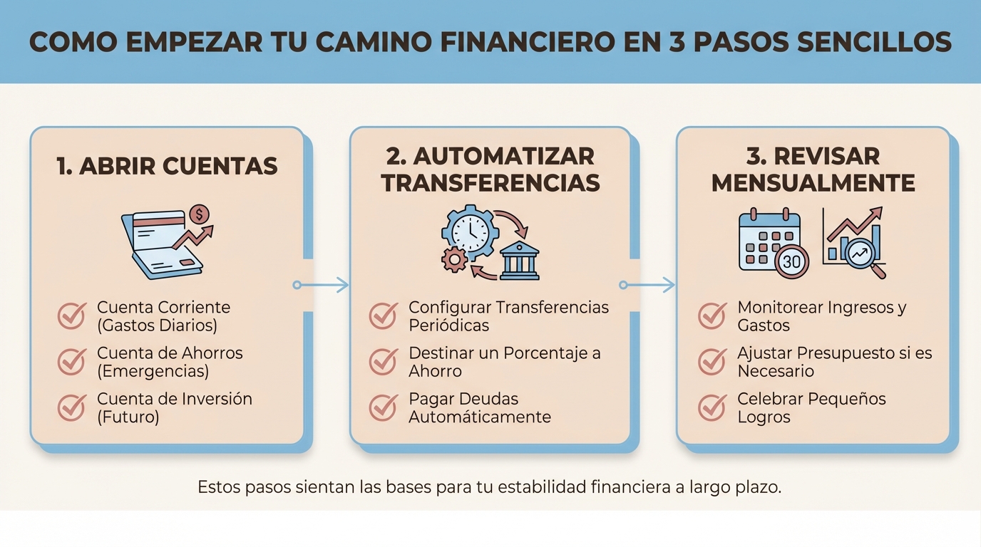 Paso 5: Vive un mes con lo que queda en la cuenta 1. Al final del mes, mira cómo ha ido. ¿Te sobró? Perfecto, puedes subir el ahorro. ¿Te quedaste justo? Ajusta las cantidades. El segundo mes ya va rodado.