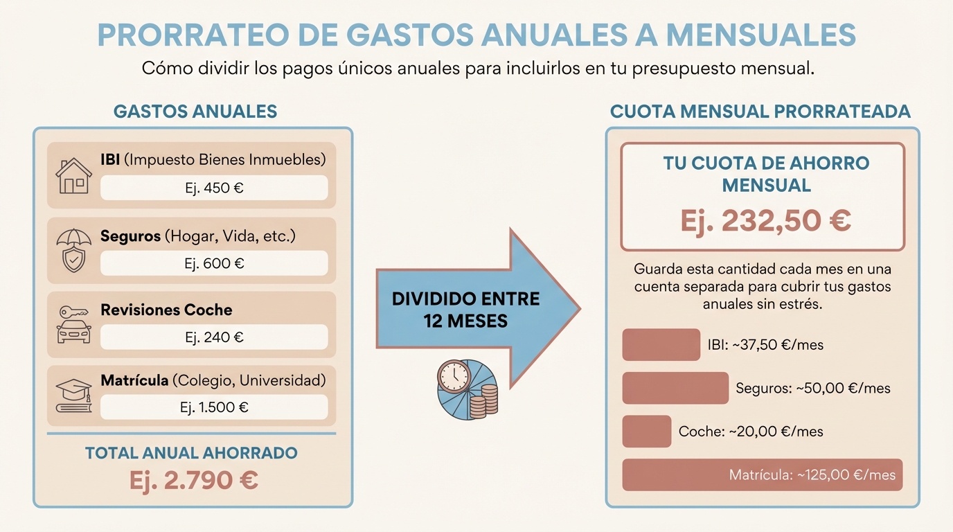 !Tabla de prorrateo: gastos anuales divididos en cuotas mensuales
